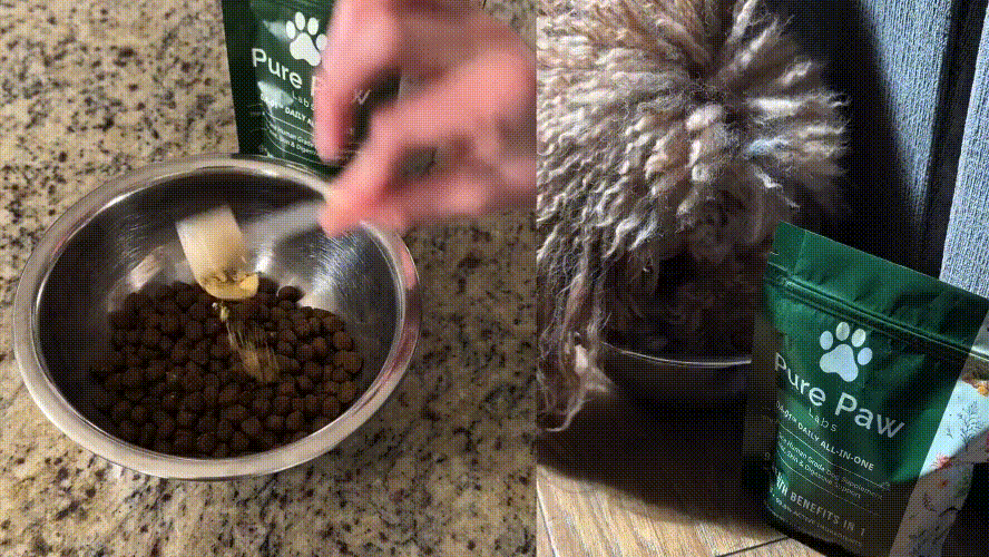 All of this happens with just one simple scoop a day, sprinkled over your dog’s food.
